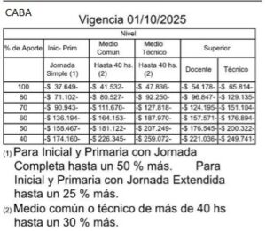 La Asociación de Institutos de Enseñanza Privada de Argentina (AIEPA) informó que las autoridades de la Provincia de Buenos Aires y de la Ciudad Autónoma de Buenos Aires aprobaron nuevos cuadros tarifarios para los colegios de gestión privada que reciben aportes estatales, que comenzarán a regir a partir de octubre.