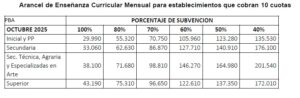 Las autoridades publicaron además los cuadros con los montos máximos autorizados para cada nivel de enseñanza, ajustados según el porcentaje de aporte estatal que perciben los establecimientos.