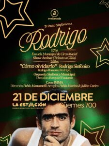 El domingo 21, a las 20 hs, vamos a compartir el “Tributo Sinfónico a Rodrigo”. En este caso se presenta el show "Cómo olvidarlo”, protagonizado por Rodrigo Romero y la Orquesta Sinfónica de Avellaneda, dirigida por Ezequiel Fautario.