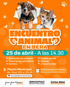 Se recuerda a los vecinos y vecinas que participen del evento, que es importante llevar a sus animalitos con correa, collar y chapita identificatoria; así como bolsitas para juntar sus desechos y bebedero para que se hidraten.