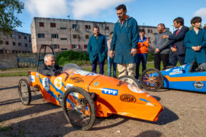 Durante una visita a la Escuela Secundaria Técnica N° 3 de Berazategui, el intendente Carlos Balor se subió a uno de los autos eléctricos diseñados y construidos por sus estudiantes, en una demostración del trabajo técnico y de innovación impulsado por este emblemático establecimiento educativo público local.