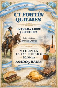 Este viernes 16 de enero, a partir de las 20:30 hs, el CT Fortín Quilmes, con la nueva presidencia a cargo del reconocido tradicionalista Norberto "Gaucho" Llamas,un emblema de la insbtitución, se convertirá en el epicentro de la tradición y la celebración en Ribera de Quilmes.