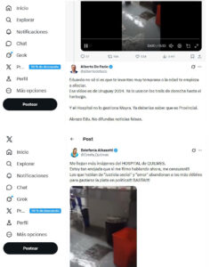 Anteriormente, Albasetti afirmó en sus redes: “Me llegan más imágenes del HOSPITAL de QUILMES.