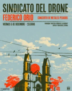 Tras el concierto en altura, el público podrá ingresar al templo para disfrutar del Sindicato del Drone, una agrupación dedicada a la creación y ejecución de piezas originales de música drone, un género basado en sonidos continuos, texturas expansivas y una escucha profunda que se aleja de las estructuras tradicionales. Utilizando instrumentos como shruti box, armonio, nvike, violines, acordeones, además de voces e incluso un instrumento "inesperado", el colectivo explora cómo la persistencia sonora puede transformar la percepción del espacio.