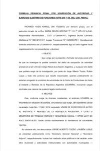 La denuncia alega que Tuzzio y Luque se atribuyen la condición de "Secretario General Nacional" y "Secretario Adjunto", respectivamente, y han realizado actos públicos en tal carácter, a pesar de no tener título ni nombramiento expedido por autoridad competente.