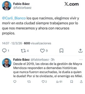 “@Carli_Bianco Con la responsabilidad de gobierno que hoy tienen, les pedimos que empiecen por reactivar las obras que el gobierno provincial tiene paralizadas en Quilmes, que son tantas o más que las que frenó el gobierno de Milei”, agregó.