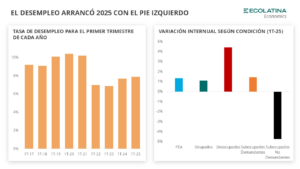 El informe de la consultora Ecolatina subraya que, pese a la reactivación, el mercado laboral se deteriora. El nivel de empleo se ubicó en el 44,4%, apenas 0,1 puntos por encima del 1T de 2024. No obstante, este ligero crecimiento de la ocupación se sostuvo a expensas de un profundo cambio en su composición, orientado hacia la precarización.