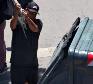 Una vez desalojados del playón por la policía, se congregaron en la esquina del Paz y Alberdi, donde comenzaron a organizarse para finalmente, llegar al portón de entrada de la Municipalidad donde encendieron neumáticos y basura, además de arrojar piedras y otros proyectiles hacia el interior.
