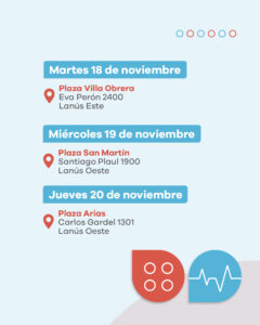 El martes 18 el punto de encuentro será en la plaza Villa Obrera (Eva Perón N° 2400, Lanús Este); el miércoles 19 en la plaza San Martín (Santiago Plaul N° 1900, Lanús Oeste); y el jueves 20 en la plaza Arias (Carlos Gardel N° 1301, Lanús Oeste).