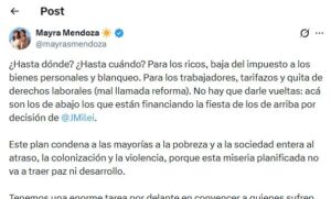 La intendenta en licencia de Quilmes, y actual diputada Bonaerense Mayra Mendoza salió al cruce ante un nuevo aumento del transporte público y cargó con artillería pesada contra el presidente Javier Milei.