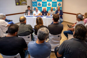 La reunión también contó con la presencia de los secretarios municipales de Trabajo, Juan Manuel Parra; y de Economía, Santiago Castagno; además del presidente de Industriales Pymes Argentinos (IPA) y del Parque Industrial Plátanos, Daniel Rosato, entre otros referentes de la industria y la producción local.