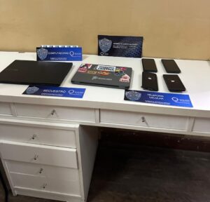 En cuanto a los elementos incautados, se secuestraron: 81 computadoras, 191 dispositivos de almacenamiento, 211 celulares y 1 arma de fuego.