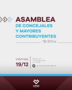 La Asamblea es una instancia participativa en la cual se define la política tributaria del Municipio. Se tratará la eximición de la Tasa de Seguridad e Higiene (TISH) a las instituciones y Centros de Día, y la eximición de la Tasa de Servicios Generales (TSG) a las personas mayores que cobren la sumatoria de hasta tres jubilaciones mínimas.