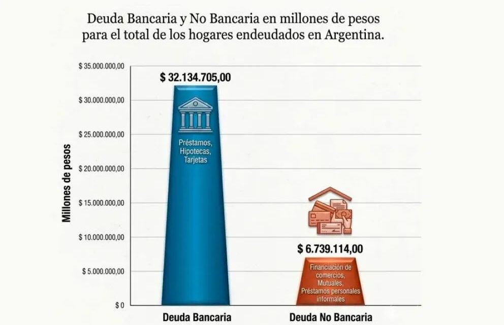 Más allá de los bancos, la deuda no bancaria afecta a más de 6 millones de hogares, con compromisos que promedian el $1,1 millón.