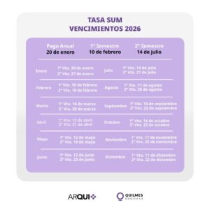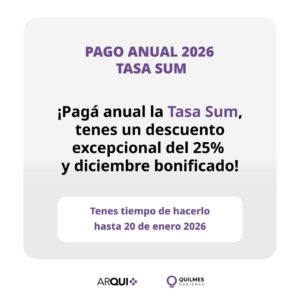 - Descuento por pago anual: 25% de descuento sobre el total de la Tasa SUM, más el mes de diciembre bonificado, si se paga antes del 20 de enero.
